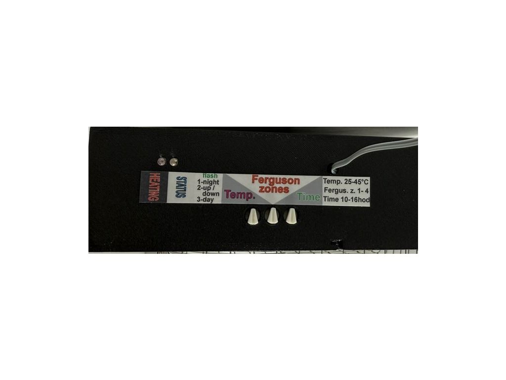 Po nastavení základních parametrů se svítidlo chová autonomně: ráno postupně nabíhají LED diody a topení tak, aby simulovali rozednívání a večer naopak. Jediné, co musíte nastavit je požadovaná teplota, Fergusonova zóna UV a denní perioda.